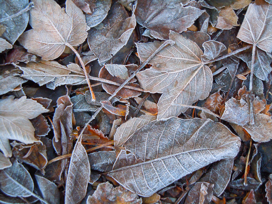 There were wonderful views of ice crystals on leaves and branches throughout the garden on the way to the tapestry studio: